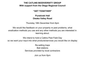 A get together at the Purekireki Hall (on the Owaka Valley Road) to talk Pest Problems in The Catlins on Thurs…